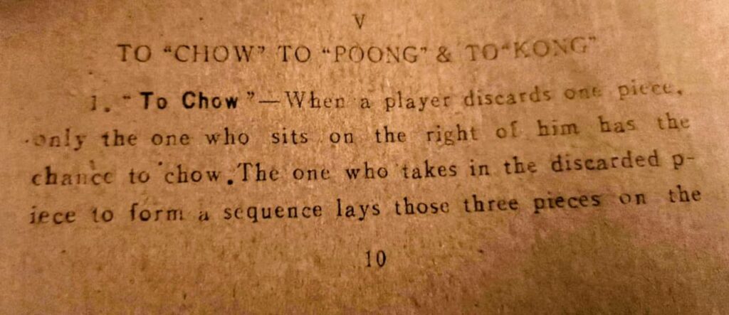 The researcher in me struggled with the fact that nothing Monty taught us was written anywhere. It was all passed down by word of mouth from teacher to student. When I began learning, I was naïve enough to think there was only one, or at most two, ways to play Mahjong. I hadn’t realized that what we were learning were “house rules on steroids”. You won’t find this version mentioned in any book, but you will find plenty of older Karachiites still playing this way.
